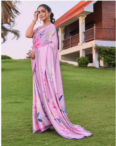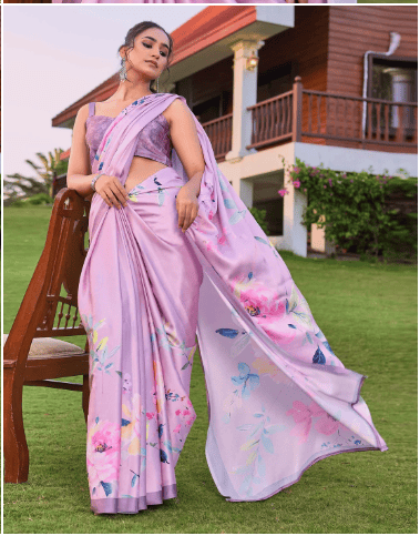 Embrace elegance and grace with this stunning Pink Satin Floral Printed Saree. Crafted from smooth, lustrous satin fabric, this saree drapes beautifully to enhance your silhouette while offering a luxurious feel. The delicate floral print adds a touch of femininity and charm, making it perfect for weddings, parties, or festive occasions.